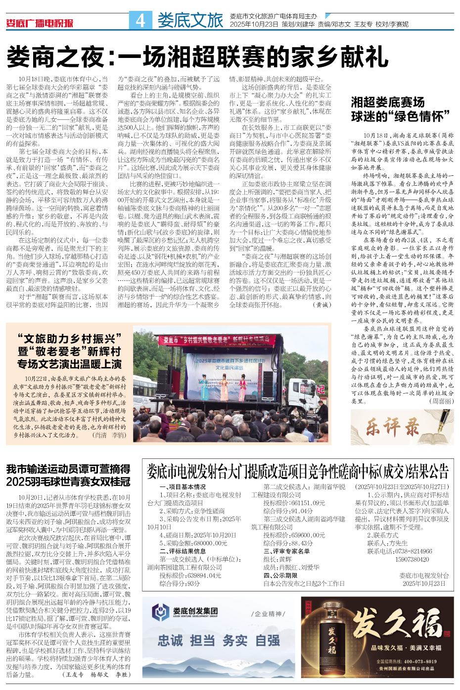 发刊日期:2025年10月23日>第4版>娄底文旅