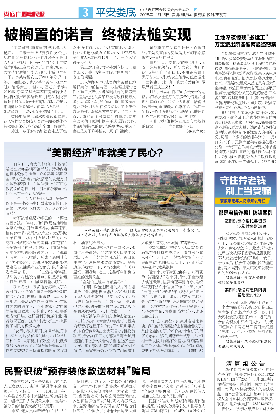 发刊日期:2025年11月13日>第3版>平安娄底