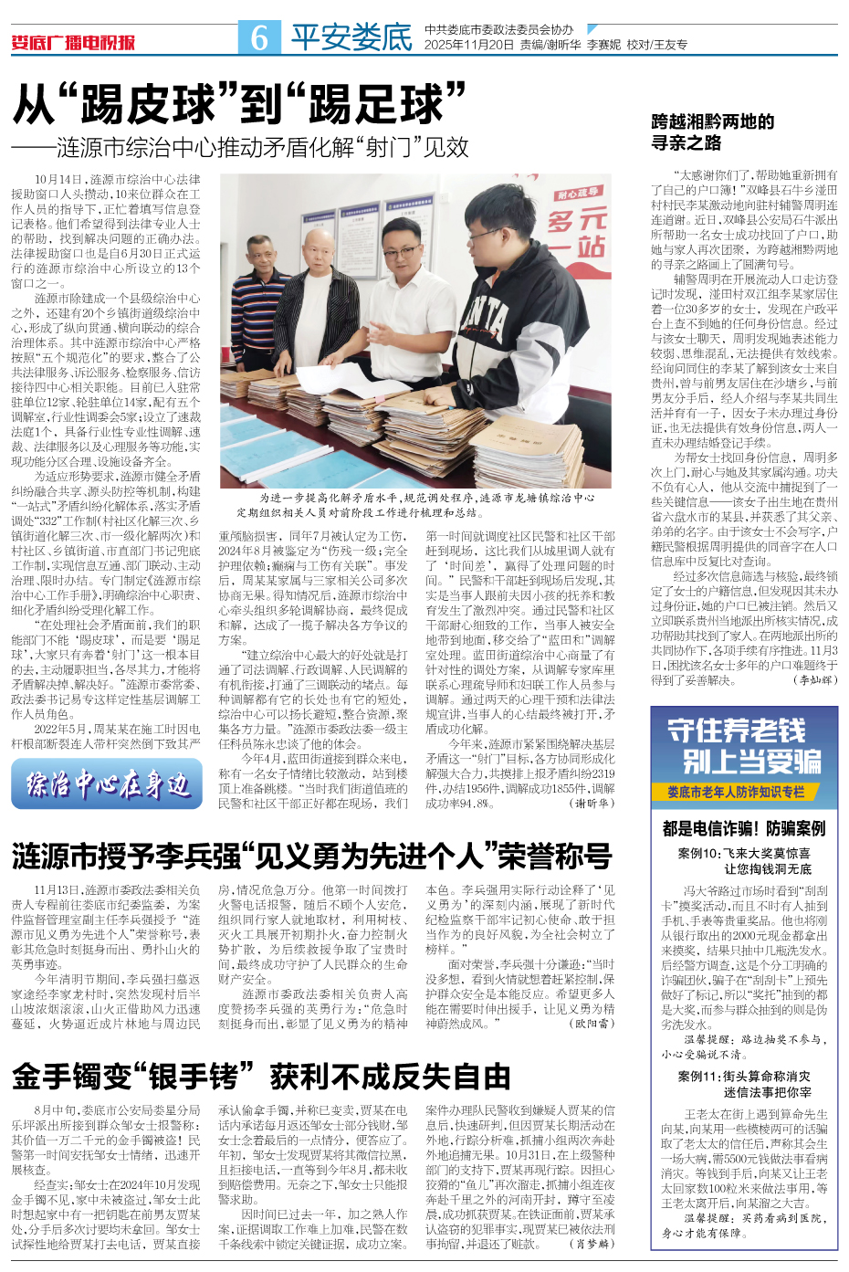 发刊日期:2025年11月20日>第6版>平安娄底