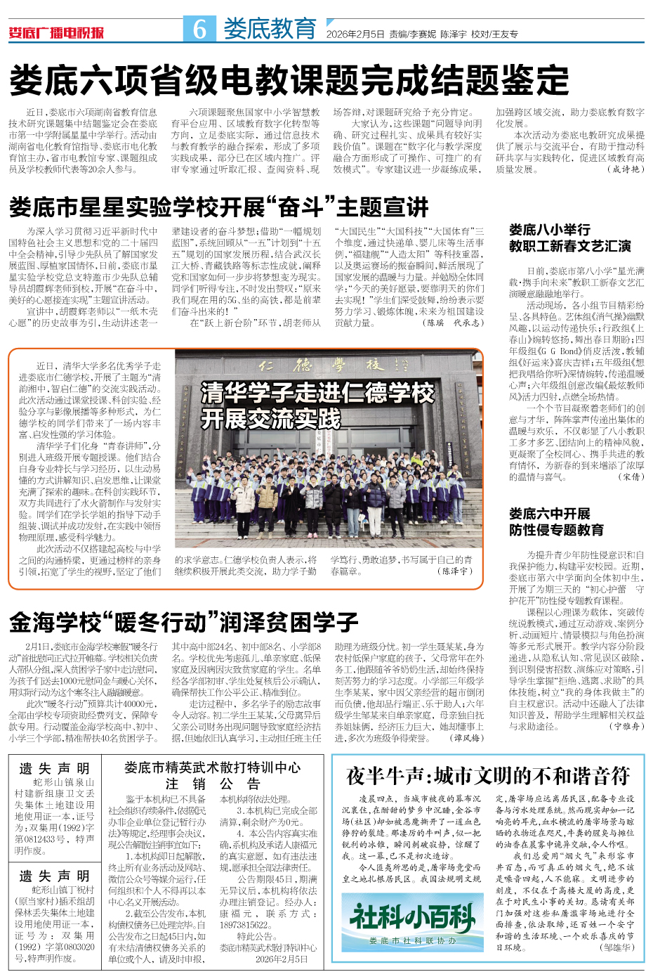 发刊日期:2026年02月05日>第6版>娄底教育