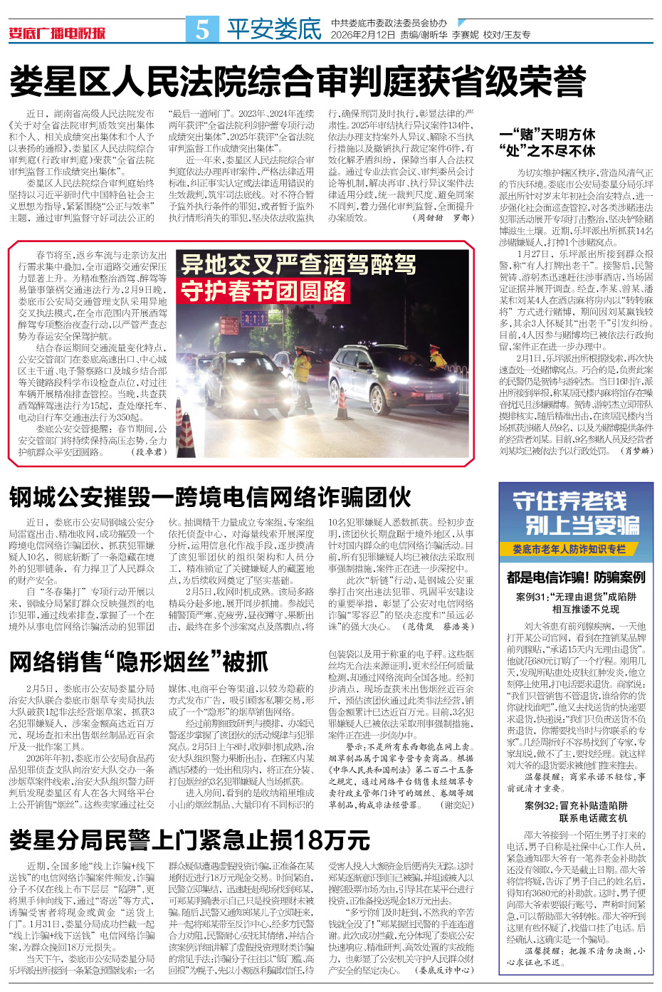 发刊日期:2026年02月12日>第5版>平安娄底