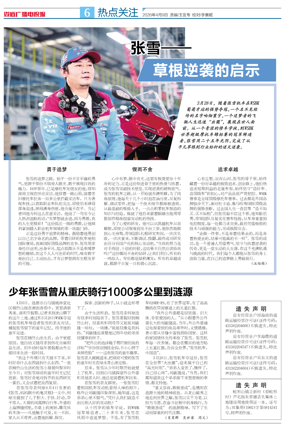 ·少年张雪曾从重庆骑行1000多公里到涟源