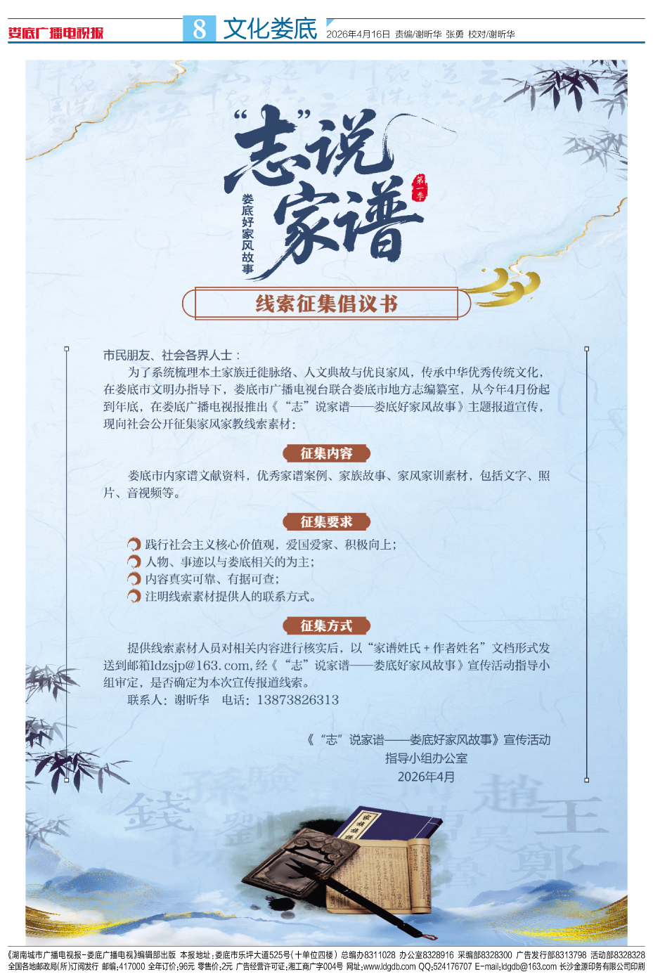 《“志”说家谱——娄底好家风故事》 线索征集倡议书